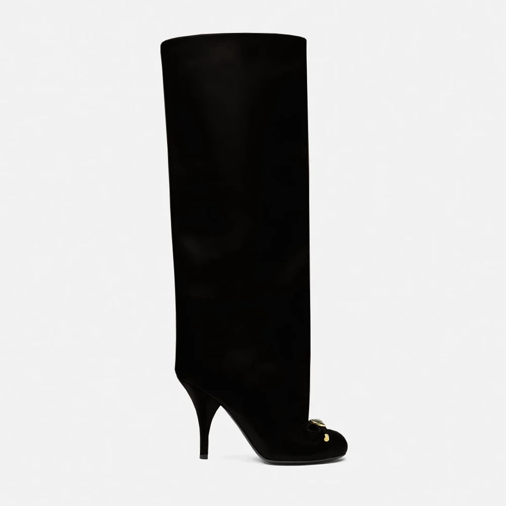 - Elegantes Design: Goldene Akzente und eine schlanke Stiletto-Optik verleihen den Stiefeln einen luxuriösen und zeitlosen Stil.