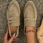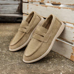 Diese stilvollen Loafer vereinen zeitloses Design mit höchstem Tragekomfort. Hergestellt aus einem weichen Obermaterial in dunkelblauer und beiger Veloursleder-Optik, passen sie perfekt zu sowohl lässigen als auch formellen Outfits. Die leichte Gummisohle sorgt für zusätzliche Flexibilität und Grip, während das schlichte, minimalistische Design Vielseitigkeit für jeden Anlass bietet.