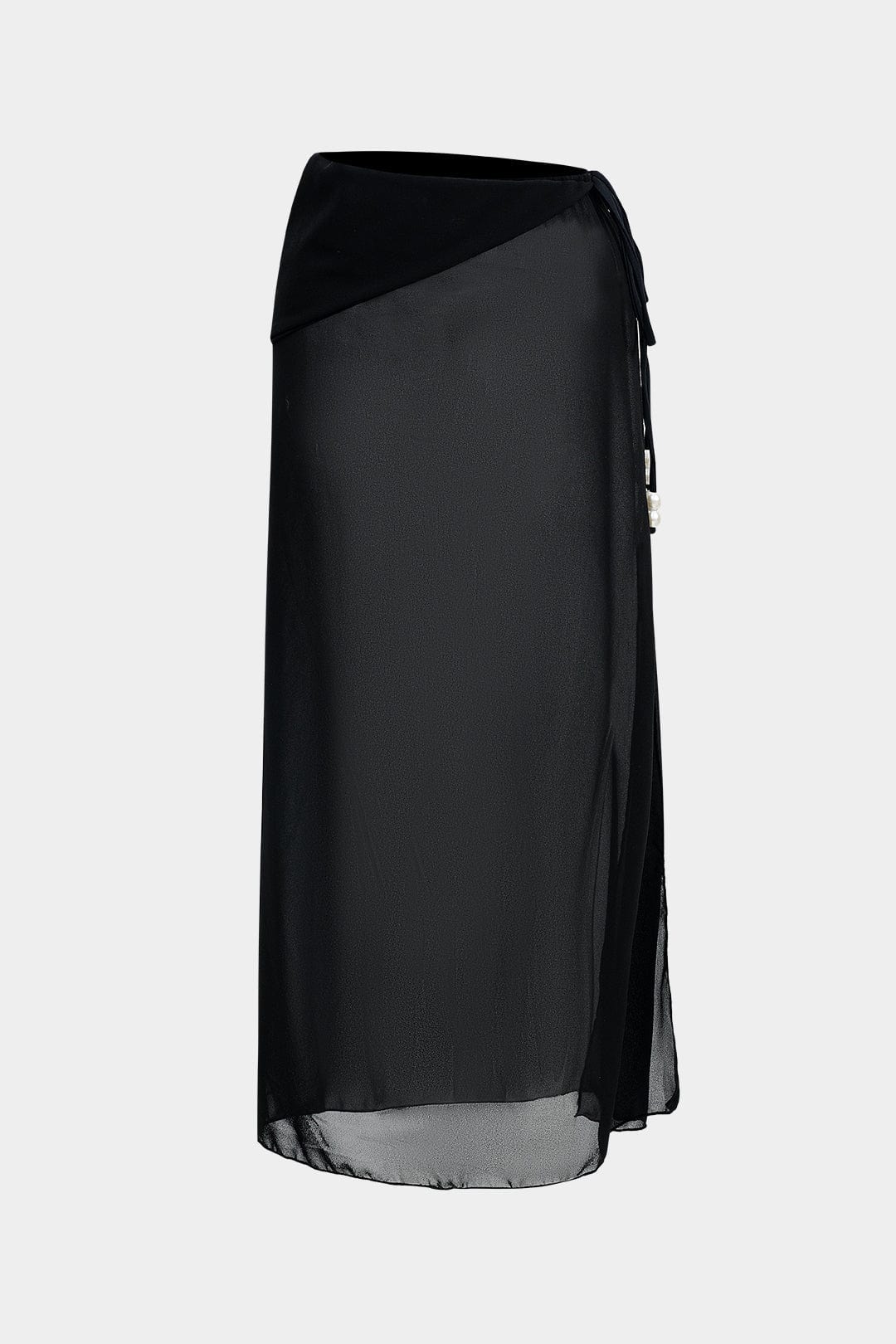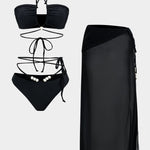 Meredith | Dreiteiliges Bikini-Set mit Wickelband-Design, Perlen-Details und transparentem Pareo