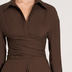 Braune Oversize Bluse mit Drapierung und Hemdkragen für Damen