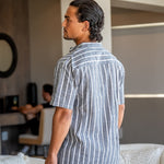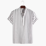 Charles | Gestreiftes Herren-Sommer Leinenhemd mit Stehkragen