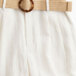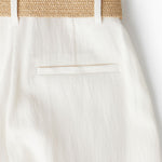 Diese elegante, weiße Linnenhose ist der perfekte Begleiter für den Sommer. Mit ihrem lockeren Schnitt und der hohen Taille bietet sie sowohl Komfort als auch Stil. Der beigefarbene Gürtel mit Holzringverschluss setzt einen schönen Akzent und betont die Silhouette. Das leichte, atmungsaktive Material sorgt für frische Luftzirkulation und macht diese Hose ideal für warme Tage.