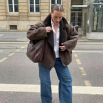 Die Lisa Lederjacke in Übergröße Braun mit Teddyfutter kombiniert robustes, hochwertiges Leder mit einem kuscheligen Teddyfutter, das für zusätzliche Wärme und Komfort sorgt. Der lässige, oversized Schnitt bietet nicht nur eine bequeme Passform, sondern verleiht der Jacke auch eine moderne, trendige Ausstrahlung. Das braune Leder und das weiche Teddyfutter machen die Jacke zum idealen Begleiter für kühle Tage, während sie gleichzeitig vielseitig genug ist, um sie zu fast jedem Outfit zu kombinieren – sei es zu Jeans, Leggings oder einem schicken Kleid.