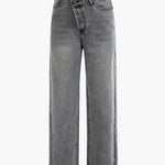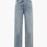 Der einzigartige asymmetrische Bund setzt ein modisches Statement, während der weite Schnitt eine bequeme Passform garantiert. Die hochwertige Denim-Qualität und die entspannte Vintage-Waschung machen diese Jeans zum ultimativen Allrounder für moderne Streetwear-Outfits. Perfekt für den Alltag, lässige Looks oder stilvolle Kombinationen mit Blusen und Sneakers.