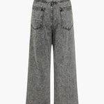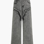 Diese stylische High-Waist Hosen in grauer Waschung vereint modernen Komfort mit einem auffälligen Design. Die asymmetrischen Nähte und dekorativen Knöpfe an der Vorderseite sorgen für einen einzigartigen, edgy Look. Der weite Bein-Schnitt bietet eine entspannte Passform und maximalen Komfort, während das robuste Denim-Material Langlebigkeit garantiert. Perfekt für lässige Outfits oder einen individuellen Streetstyle.