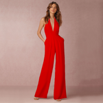 Damen Jumpsuit mit Tiefer V-Ausschnitt – Eleganter Ärmelloser Overall mit Weitem Bein