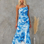 Asymmetrisches Midikleid mit Blumenmuster – Schulterfreies Sommerkleid mit Volant-Saum