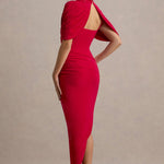 Drapiertes Midikleid – Figurbetontes Abendkleid mit Stehkragen & Cape-Detail