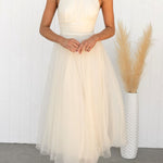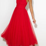 Mit diesem romantischen Tüllkleid wirst du zum Inbegriff von Eleganz und Leichtigkeit. Der Halterneck-Ausschnitt mit zarter Chiffonbindung um den Hals, die betonte Taille und der mehrlagige Tüllrock sorgen für eine traumhafte Silhouette voller Anmut. Die zartrosafarbene Nuance verleiht dir einen Hauch von Feenhaftigkeit – ideal für Hochzeiten, elegante Sommerfeste oder besondere Momente, in denen du dich einfach wunderschön fühlen willst.