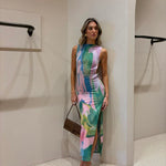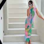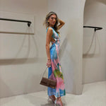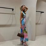Das Hannelore Maxikleid ist ein luxuriöses Statement-Stück für modebewusste Frauen, die Eleganz und Raffinesse schätzen. Mit seinem kunstvollen Farbverlauf und dem schmeichelnden Schnitt zaubert es eine feminine Silhouette, während der verführerische offene Rücken das Highlight dieses Designs bildet. Die seitlichen Schlitze verleihen dem Kleid eine luftige Leichtigkeit und setzen Ihre Beine stilvoll in Szene – ideal für besondere Anlässe, Urlaube oder glamouröse Sommerpartys.