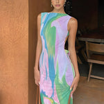 Isla | Ärmelloses Maxi-Kleid mit Wasserfarben-Print – Kunstvolle Eleganz