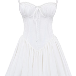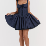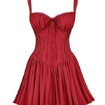 Dieses bezaubernde Minikleid mit Korsett-Oberteil vereint feminine Sinnlichkeit mit einem Hauch Nostalgie. Das Design ist inspiriert von klassischen Korsettformen, modern interpretiert für selbstbewusste Frauen, die einen extravaganten Auftritt lieben. Die verstellbaren Träger sorgen für perfekten Halt, während der herzförmige Ausschnitt mit Schleifendetail das Dekolleté stilvoll betont.