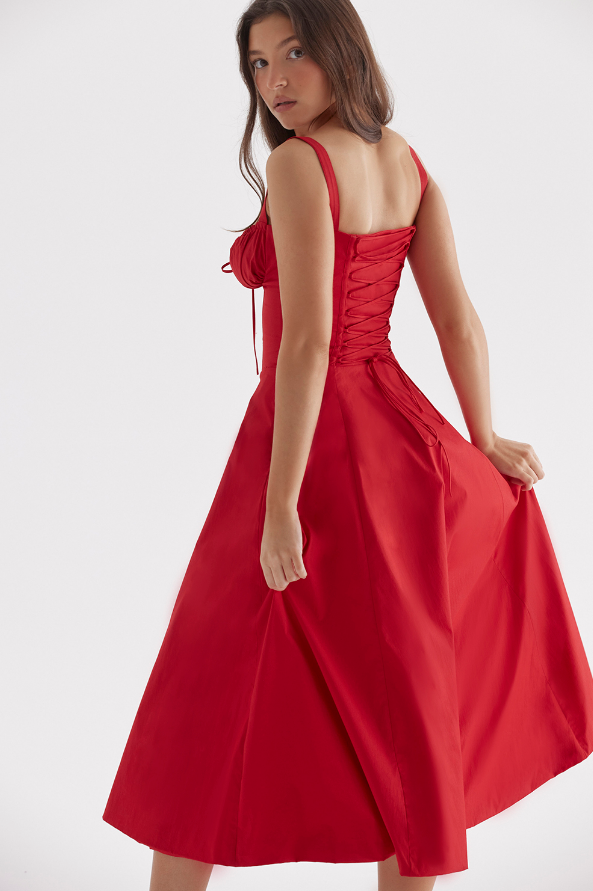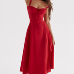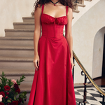 Sophia | Rotes Corsagenkleid mit A-Linie & Beinschlitz