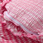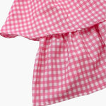 Stilvolles Design : Pink-weiß kariertes Muster mit femininen Rüschen-Details.