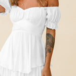 Verleihen Sie Ihrem Kleiderschrank ein Upgrade mit diesem Filomena Sommer Off-Shoulder Minikleid, perfekt für sommerliche Ausflüge, Brunch-Dates oder besondere Anlässe. Mit einem schmeichelhaften Herzausschnitt und kurzen Puffärmeln kombiniert dieses Kleid Eleganz mit modernem Stil. Der geschichtete Volantrock verleiht einen verspielten Touch und macht es zu einem Muss für einen schicken und mühelosen Look.
