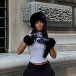 Emma | Flauschige Lederhandschuhe in Schwarz für Damen