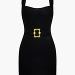 Amara | Elegantes Schwarzes Minikleid mit Goldgürtel – Zeitlose Raffinesse für stilvolle Auftritte