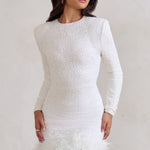 • Luxuriöse Details: Der Federsaum sorgt für eine auffällige, aber raffinierte Note.
