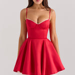 Eva | Samt-Minikleid mit Spaghettiträgern und Ausgestelltem Rock