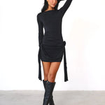 Mini-Kleid mit seitlichen Raffungen und langen Ärmeln