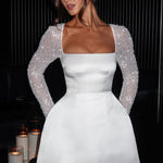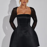 Nina | Satiniertes Minikleid mit Glitzernden Langärmeln