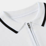 Ein modernes Poloshirt mit sportlich-elegantem Touch. Das cleane Design wird durch dezente Kontraststreifen an Kragen und Ärmeln aufgewertet. Der halbe Reißverschluss verleiht dem Shirt eine lässige Note und sorgt für vielseitige Styling-Optionen. Gefertigt aus weichem, atmungsaktivem Stoff, ist es ideal für einen stilvollen Look im Alltag oder im Büro.
