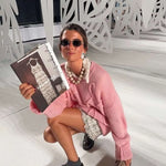 Dieser Damen Strickpullover überzeugt mit seiner lockeren Oversize-Passform und einem einzigartigen Strickmuster, das dem Design eine moderne Note verleiht. Der weiche Stoff sorgt für hohen Tragekomfort, während die lange Form und die weiten Ärmel Bewegungsfreiheit und Gemütlichkeit bieten. Perfekt für die Übergangszeit oder kühle Tage lässt sich der Pullover vielseitig kombinieren – ob zu Jeans für einen lässigen Look oder über einem Rock für ein feminines Outfit. Ein Must-Have für jede stilbewusste Frau, die Mode mit Komfort verbinden möchte.