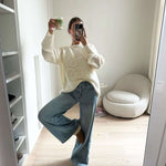 Ein kuscheliger Strickpullover, der Mode und Komfort vereint – perfekt für stilvolle Outfits in jeder Saison.
