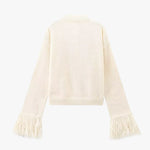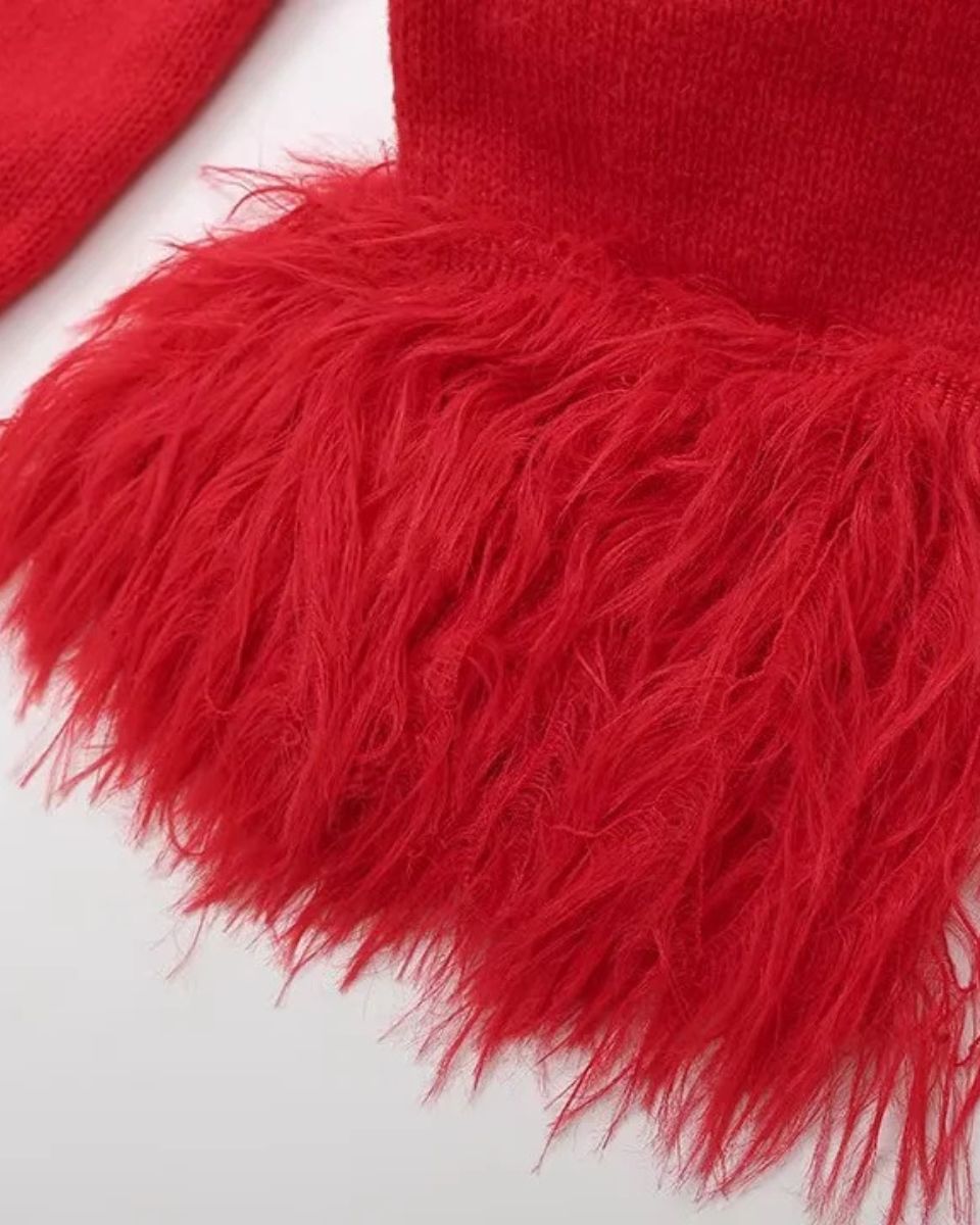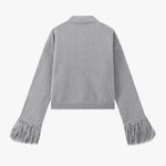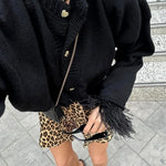 Luxuriöse Akzente: Die Federn an den Ärmeln verleihen diesem Cardigan einen auffälligen und einzigartigen Stil.