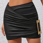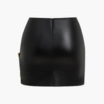 Lyra | Figurbetonter Kunstleder-Minirock mit asymmetrischer Drapierung und goldener Zierschnalle