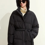 Alica | Dicke Kapuzen-Daunenjacke mit Gürtel