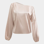Astrid | Ballonärmeln Asymmetrische One-Shoulder Satin-Bluse