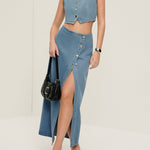 Diana | Jeans-Weste & Maxirock mit Schlitz – Der perfekte Denim-Look für moderne Fashionistas