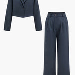 Das Feline Zweiteiler-Set vereint klassische Eleganz mit einem modernen Schnitt. Der kurz geschnittene Blazer mit Knopfverschluss sorgt für eine stilvolle Silhouette, während die weit geschnittene, hochtaillierte Hose maximalen Komfort bietet und die Figur schmeichelhaft in Szene setzt. Eine Kombination, die sowohl im Büro als auch bei besonderen Anlässen einen zeitlosen und trendbewussten Look garantiert.