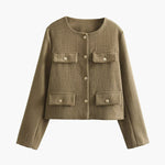 Entdecken Sie zeitlose Eleganz mit dieser Tweedjacke, die goldene Knopf-Akzente und ein modernes, cropped Design bietet. Perfekt für schicke Büro-Outfits oder einen eleganten Abendlook, kombiniert dieses vielseitige Stück klassischen Stil mit zeitgenössischen Trends. Ihre taillierte Passform und stilvollen Details machen sie zu einem unverzichtbaren Kleidungsstück, das sowohl Ihre Alltagsoutfits aufwertet als auch Ihrem Abendensemble eine besondere Raffinesse verleiht. Jetzt einkaufen und diese stilvolle, unverzichtbare Jacke für ein gepflegtes, modisches Erscheinungsbild in Ihrer Garderobe ergänzen.
