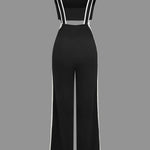 Das Sabine Zweiteiler-Set verbindet modernes Design mit figurschmeichelnden Details. Das elegante Crop-Top mit kontrastierenden Trägern sorgt für einen stylischen Blickfang, während die hochgeschnittene Hose mit weitem Bein eine schlanke Silhouette zaubert. Perfekt für stilbewusste Frauen, die einen Hauch von Sportlichkeit mit femininer Eleganz kombinieren möchten.