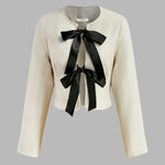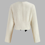 Silke | Eleganter Weißer Tweed-Blazer mit Schwarzen Satin Schleifen