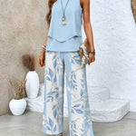 Dieses elegante Zweiteiler-Set für Damen vereint Komfort mit femininer Leichtigkeit. Das ärmellose, fließende Top und die weit geschnittene Hose mit Blätterprint ergeben ein harmonisches Outfit für sonnige Tage – ob im Urlaub, beim Stadtbummel oder als relaxtes Alltags-Outfit.