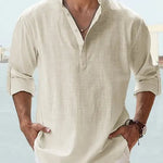 John | Luftiges Leinenhemd mit Henley-Kragen