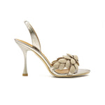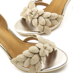 Luxuriöse Goldene Slingback-Sandalen mit Strassblumen – Perfekt für besondere Anlässe