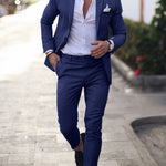 Dieser elegante zweiteilige Herrenanzug ist die perfekte Wahl für Männer, die Stil und Selbstbewusstsein ausstrahlen möchten. Mit seinem modernen, schmalen Schnitt und der klaren Linienführung sorgt dieser Anzug für einen anspruchsvollen Auftritt – sei es bei geschäftlichen Terminen, Hochzeiten oder besonderen Abendveranstaltungen. Das Design betont eine aufrechte Haltung und verleiht jedem Look eine kultivierte Note.
