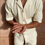 Herren Sommer Set – Kurzarmhemd & Shorts mit modernem Streifen-Design