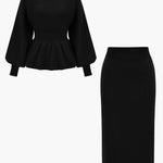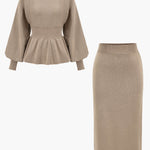 Amelie | Elegantes Strick-Set mit Peplum-Top & Bleistiftrock