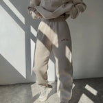 Zweiteiliges Design: Das Set besteht aus einem weiten Oberteil und einer lockeren Hose, die zusammen eine harmonische Silhouette bilden und sich perfekt für entspannte, aber modische Outfits eignen.