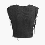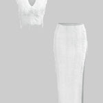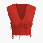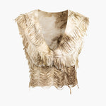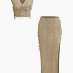 Der Charlene Fransen-Zweiteiler ist ein atemberaubendes Ensemble, das Stil und Dynamik vereint. Das ärmellose Top mit V-Ausschnitt sorgt für eine feminine Note, während der figurbetonte Rock mit seitlichem Schlitz und langen Fransen eine elegante Bewegung verleiht. Perfekt für besondere Anlässe, Partys oder sommerliche Abendveranstaltungen.