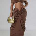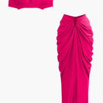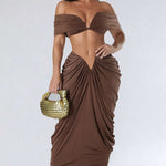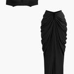 Das Desiree Off-Shoulder-Set ist die perfekte Wahl für einen glamourösen Auftritt. Das raffinierte Design mit schulterfreiem Oberteil und drapierter Midirock-Silhouette betont die Figur und verleiht einen sinnlichen, eleganten Look. Der weiche, fließende Stoff sorgt für eine luxuriöse Ausstrahlung und höchsten Tragekomfort, während die seitlichen Raffungen schmeichelnde Akzente setzen. Ideal für Abendveranstaltungen, besondere Anlässe oder stilvolle Partys.