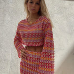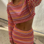 Das Elisa Zweiteilige Häkel-Set bringt Farbe und Struktur in deine Garderobe. Mit seinem einzigartigen gehäkelten Design in lebhaften Farbtönen strahlt es sommerliche Eleganz aus. Das langärmelige Crop-Top mit lockerer Passform und der figurbetonte Minirock ergänzen sich perfekt für einen stilvollen und trendbewussten Look – ideal für Urlaub, Festivals oder besondere Anlässe.