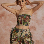 Jara | Extravagantes Zweiteiler-Set mit Bustier & bestickter Cargo-Hose