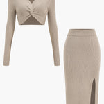 Jessica | Geripptes Zweiteiler-Set mit Twist-Detail & Schlitzrock