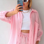 Lässiges 2-Teiler Damen Set – Oversize Hemd & Shorts aus Musselin | Zendoo.de